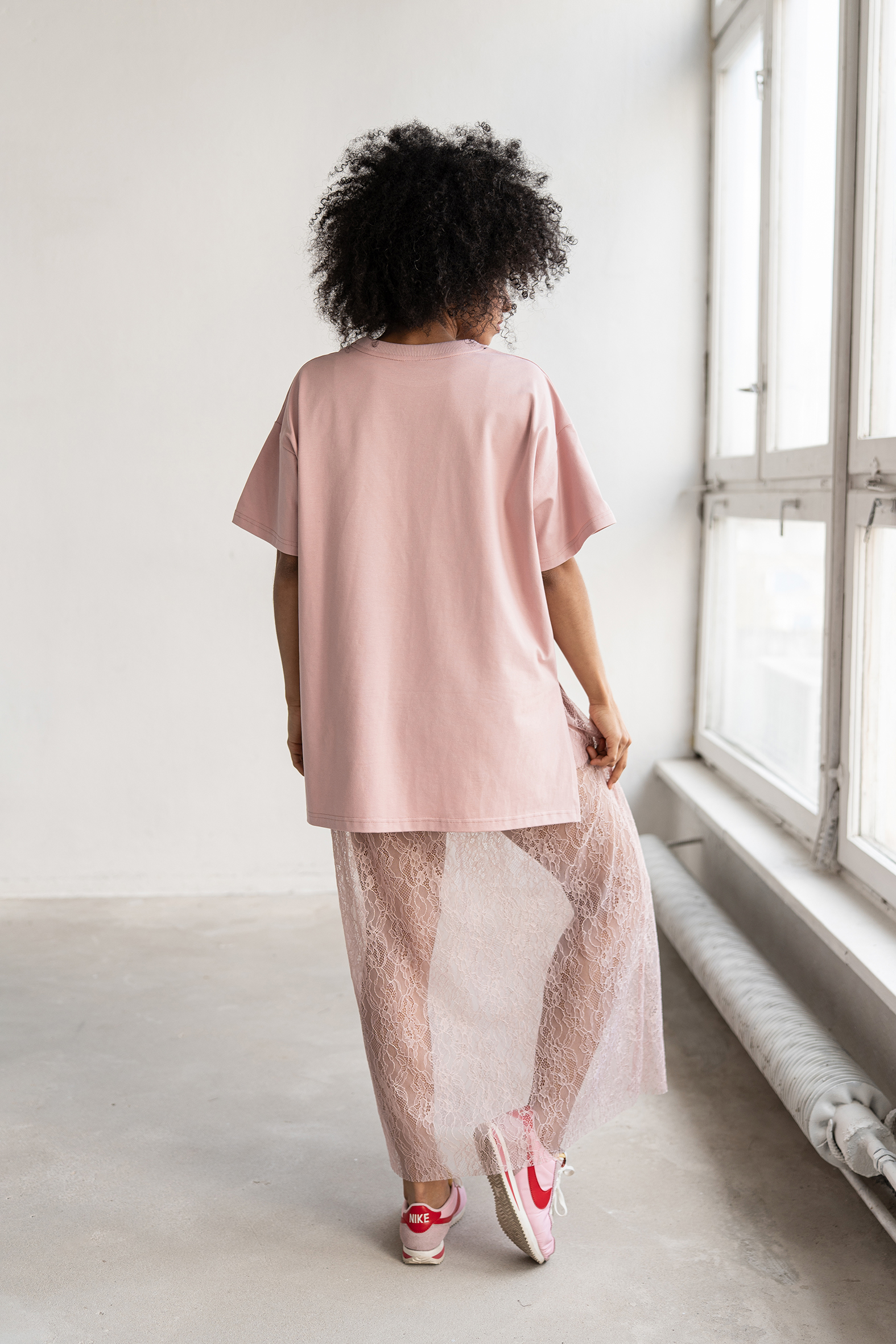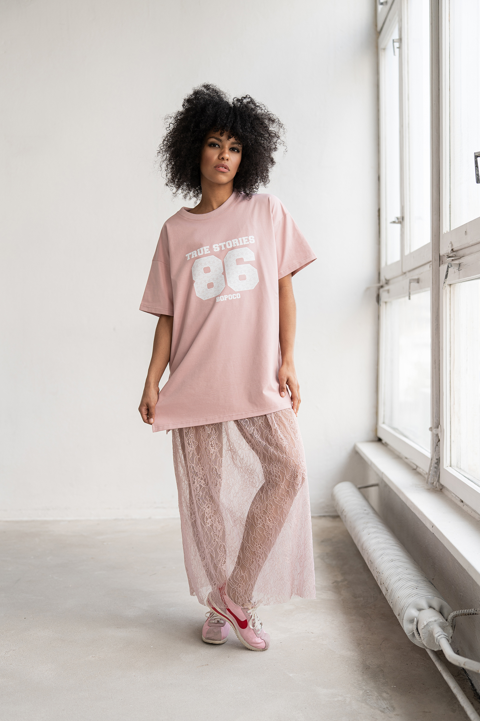 Koronka nadaje jej wyjątkowego charakteru, a zestawiona z t-shirtem Olia tworzy spójny, nowoczesny look.