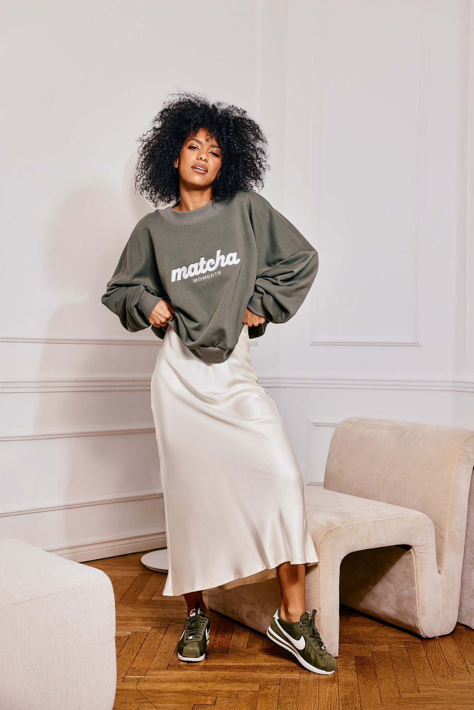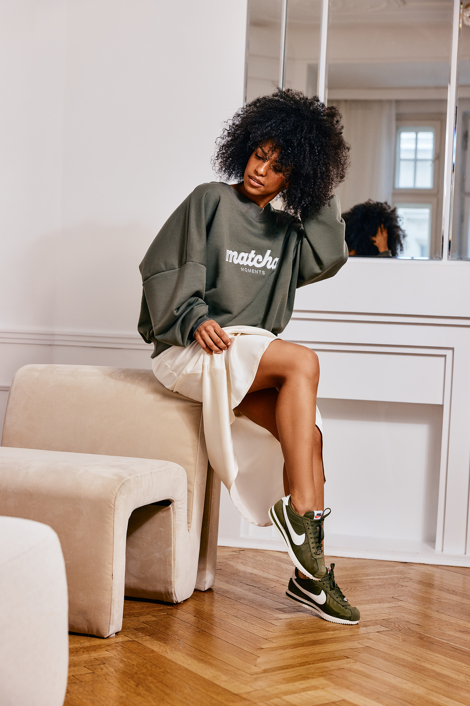 SPÓDNICA SATYNOWA KREMOWA