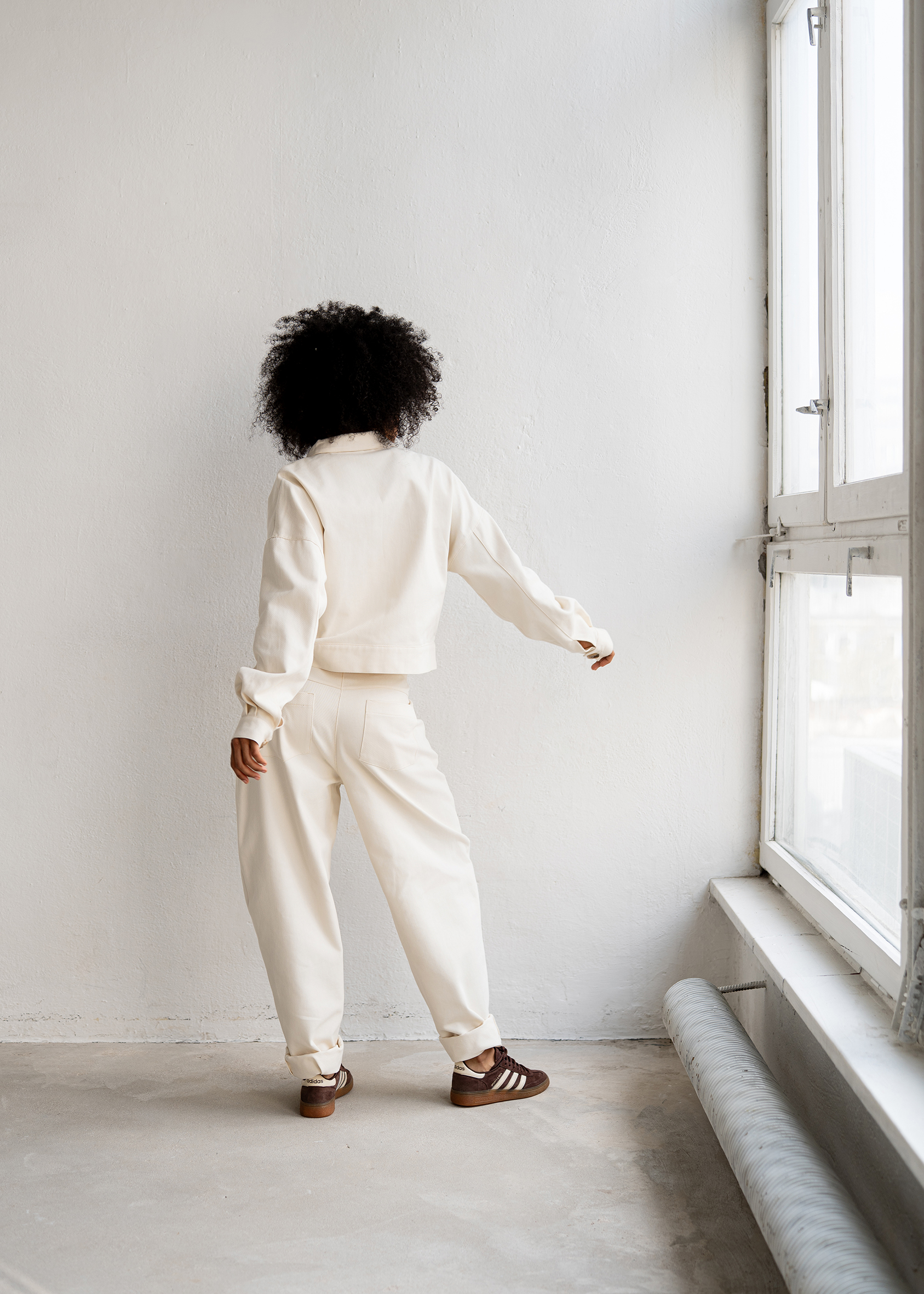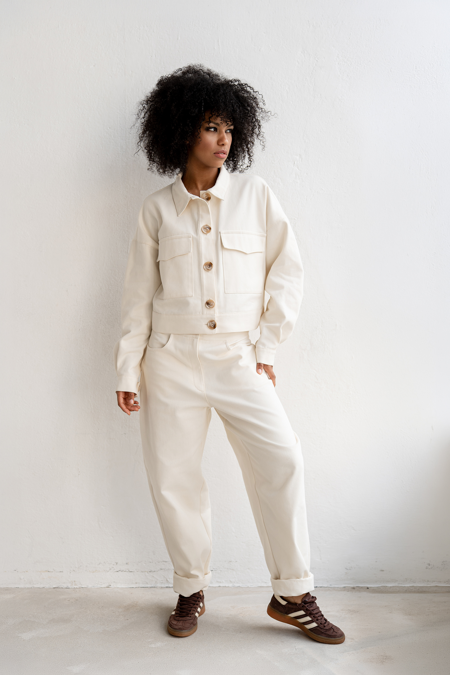 Spodnie Nelle w kolorze wanilii o luźnym fasonie łączą wygodę z miejskim stylem.