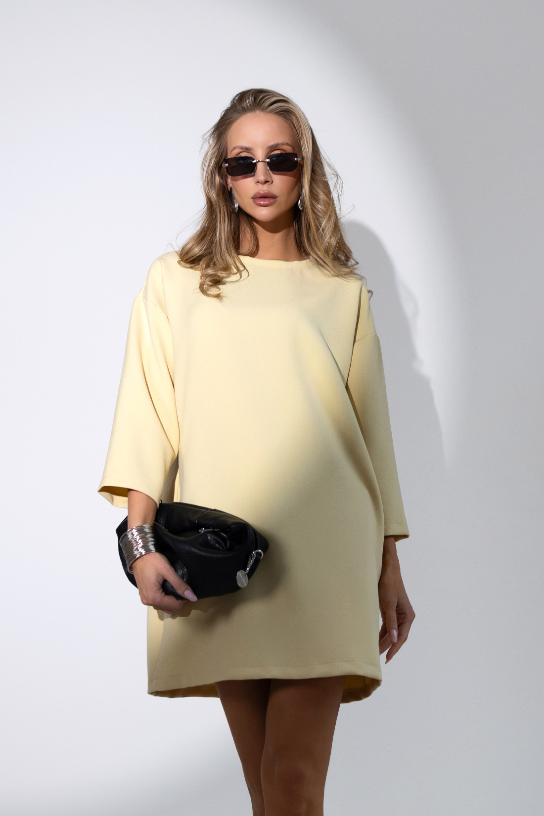 Żółta sukienka o prostym kroju z nieco dłuższym rękawkiem to wygodna i stylowa propozycja na co
