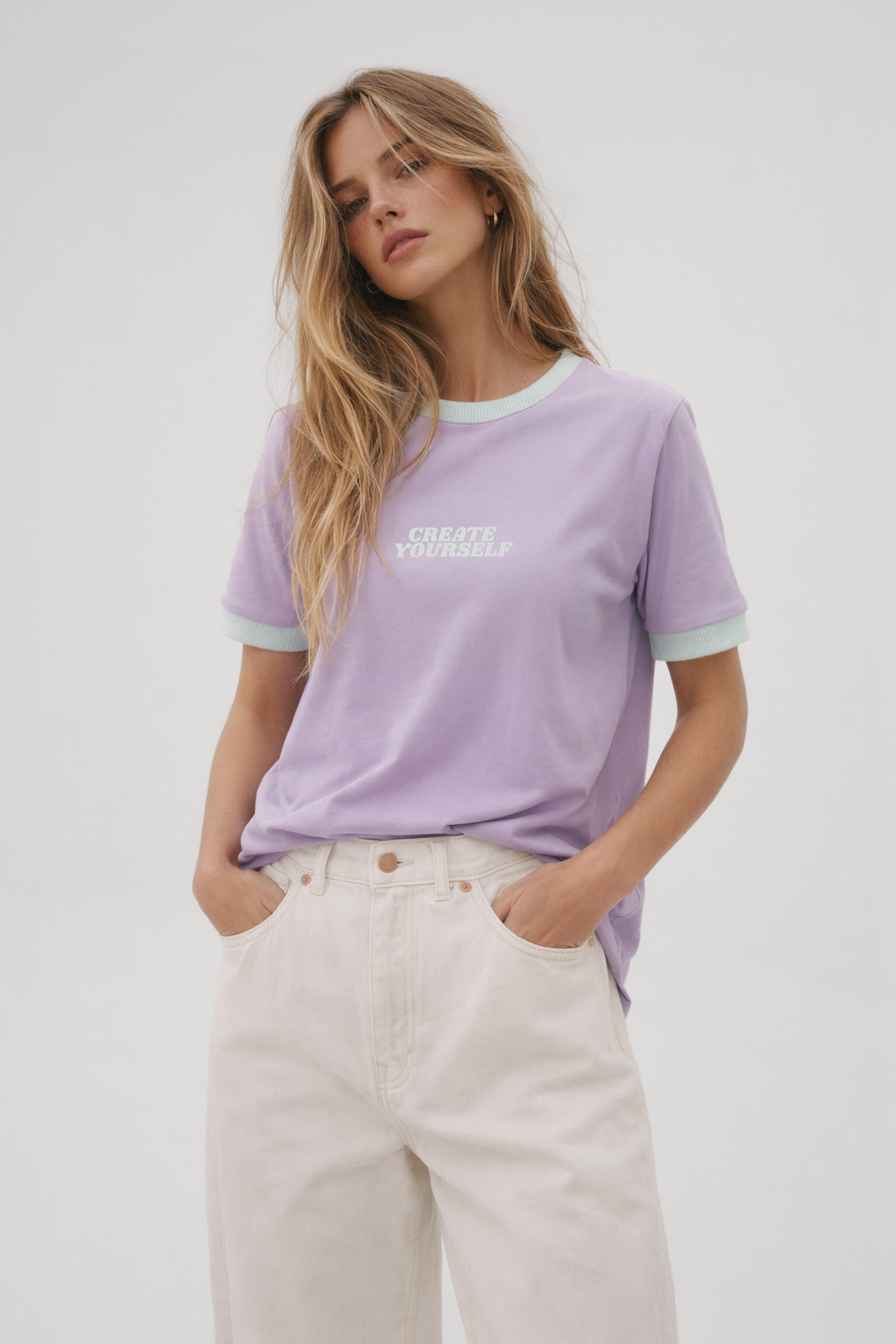 T-SHIRT LILA CREATE YOURSELF Z LAMÓWKĄ