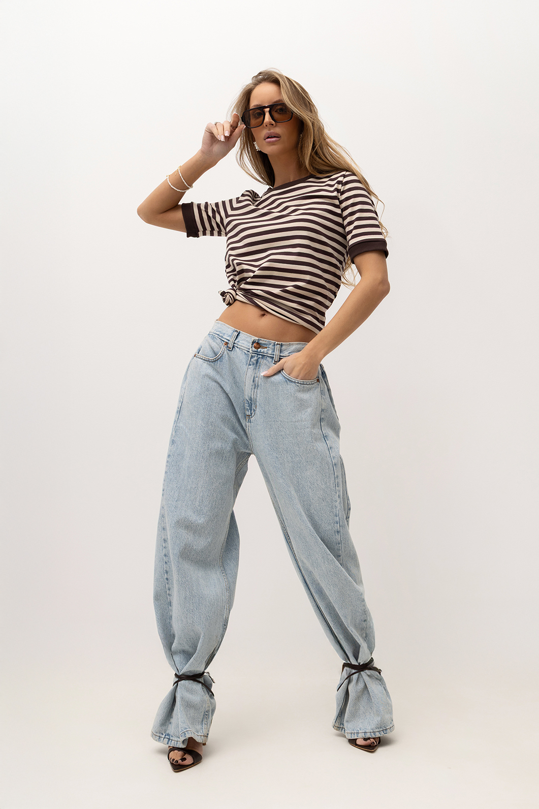 T-SHIRT W PASKI BRĄZOWO-BEŻOWE